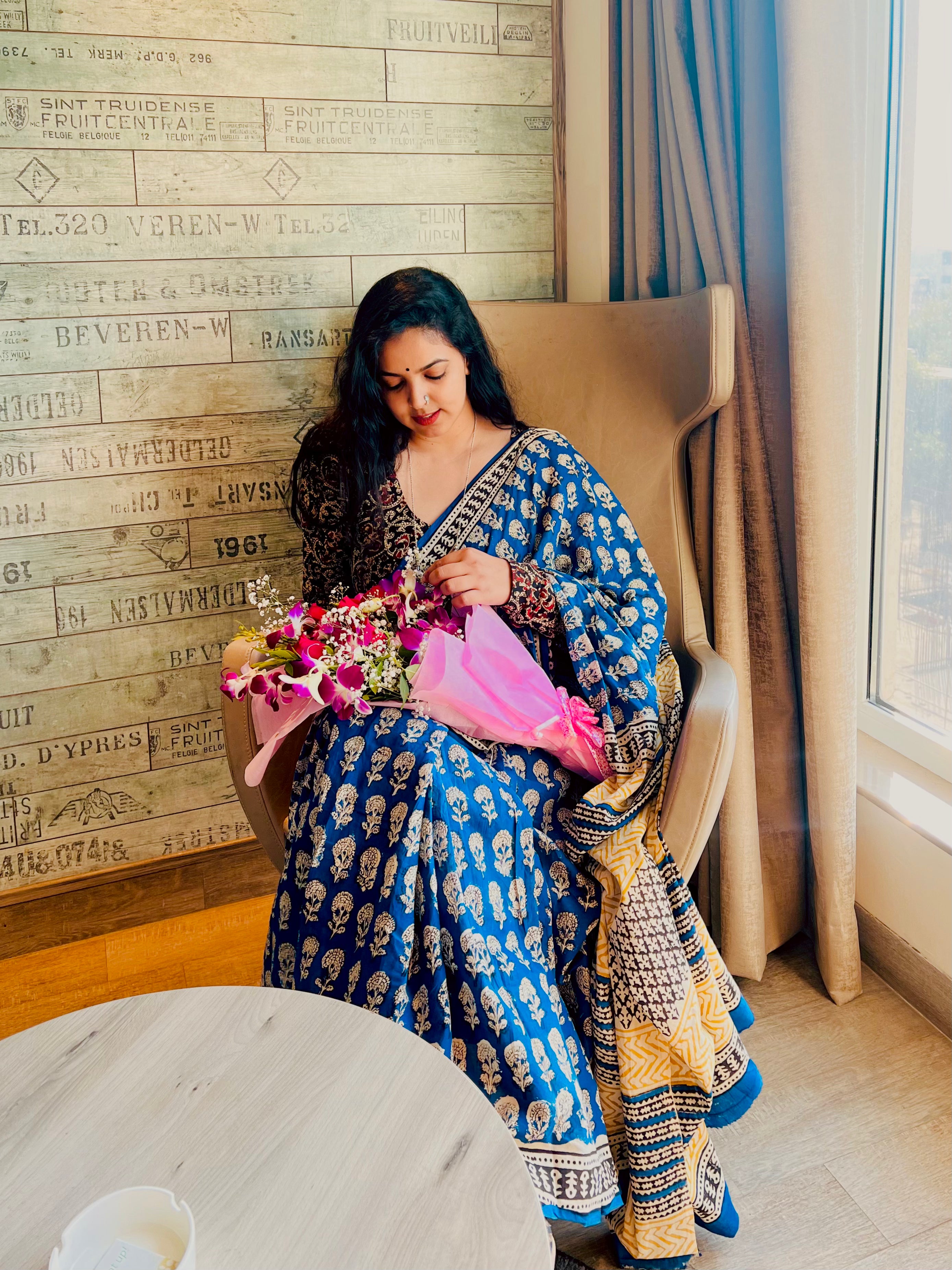 Handblock Linen saree